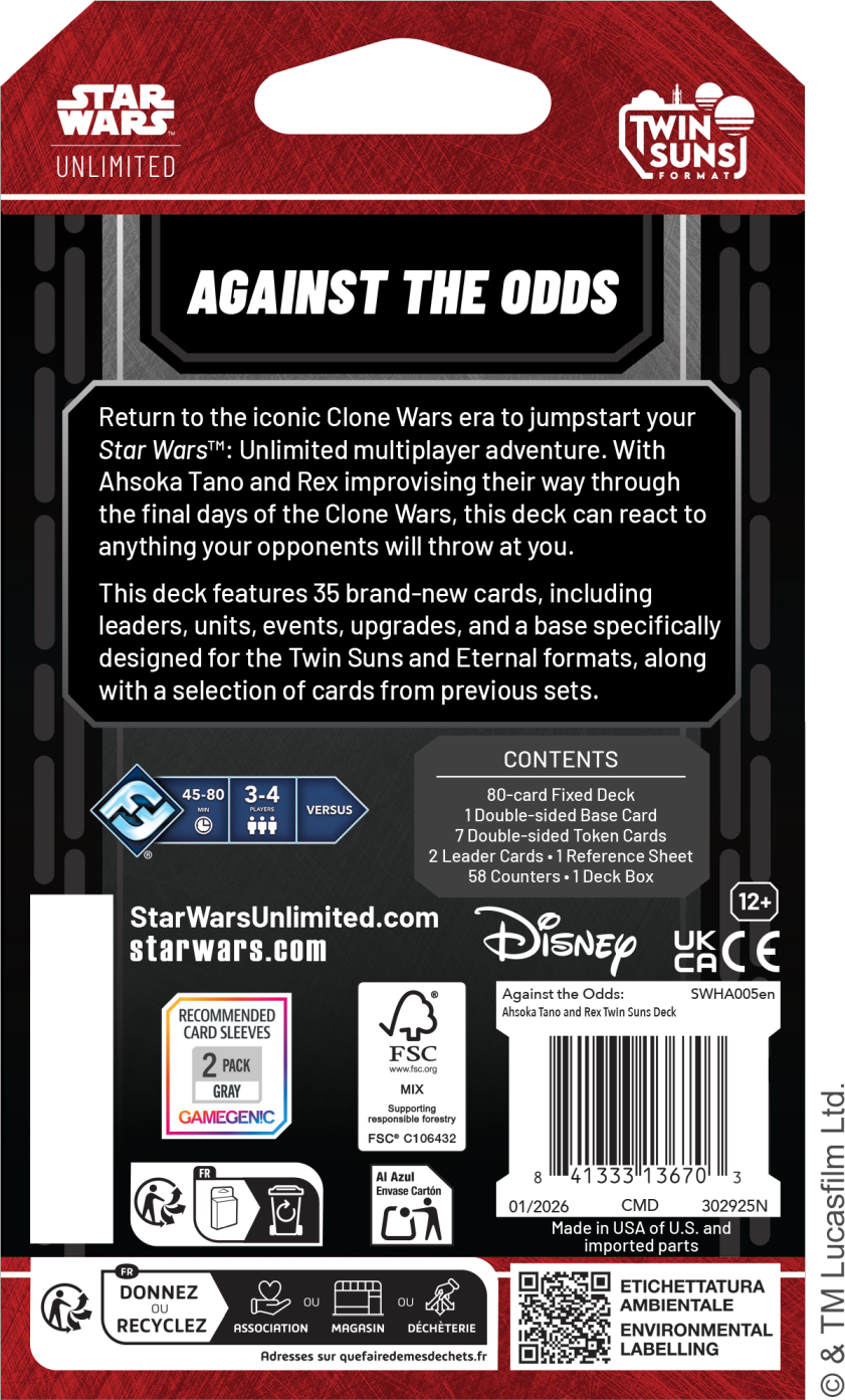 Zestaw Star Wars: Unlimited Card Game - Twin Suns Format - Against the Odds - Ahsoka and Captain Rex zawiera: