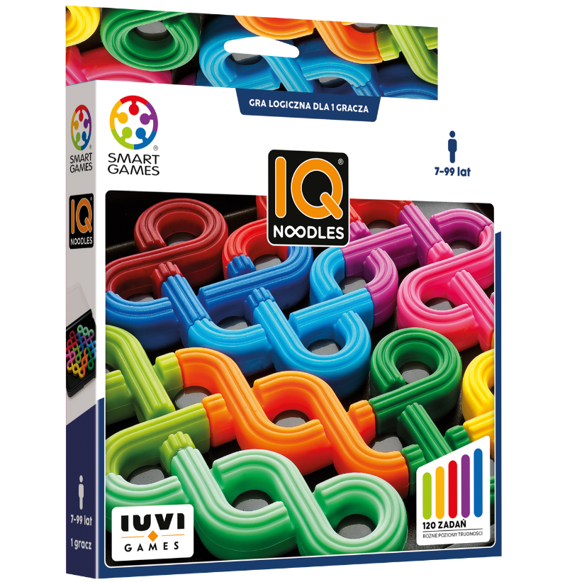 IQ Noodles to kompaktowa gra, którą możesz zabrać ze sobą wszędzie i cieszyć się rozgrywką, rozwijając przy tym umiejętności logicznego myślenia, rozwiązywania problemów, percepcję przestrzenną oraz koncentrację.