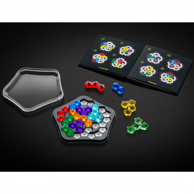 Odkryj prawdziwy klejnot wśród gier logicznych stworzony dla wymagających dorosłych. To ekskluzywne wydanie skrywa książeczkę ze 120 zadaniami, które zaintrygują nawet najbardziej wymagających miłośników łamigłówek. Czy potrafisz ułożyć wszystkie kolorowe elementy na tej zagadkowej, pięciokątnej planszy?