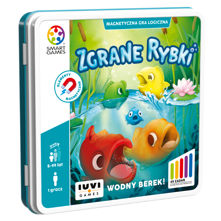 Podejmij wyzwanie SmartGames i spakuj rybki do plecaka. Dzięki magnetycznemu opakowaniu nie musisz się martwić, że rybki odpłyną w dal.